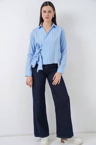 • Önü Bağlamalı Çizgili Gömlek 20362 Mavi